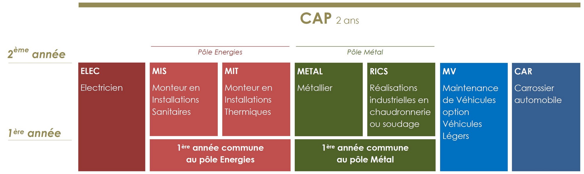 Les formations se déroulent par pôle en première année de CAP pour certaines formations.